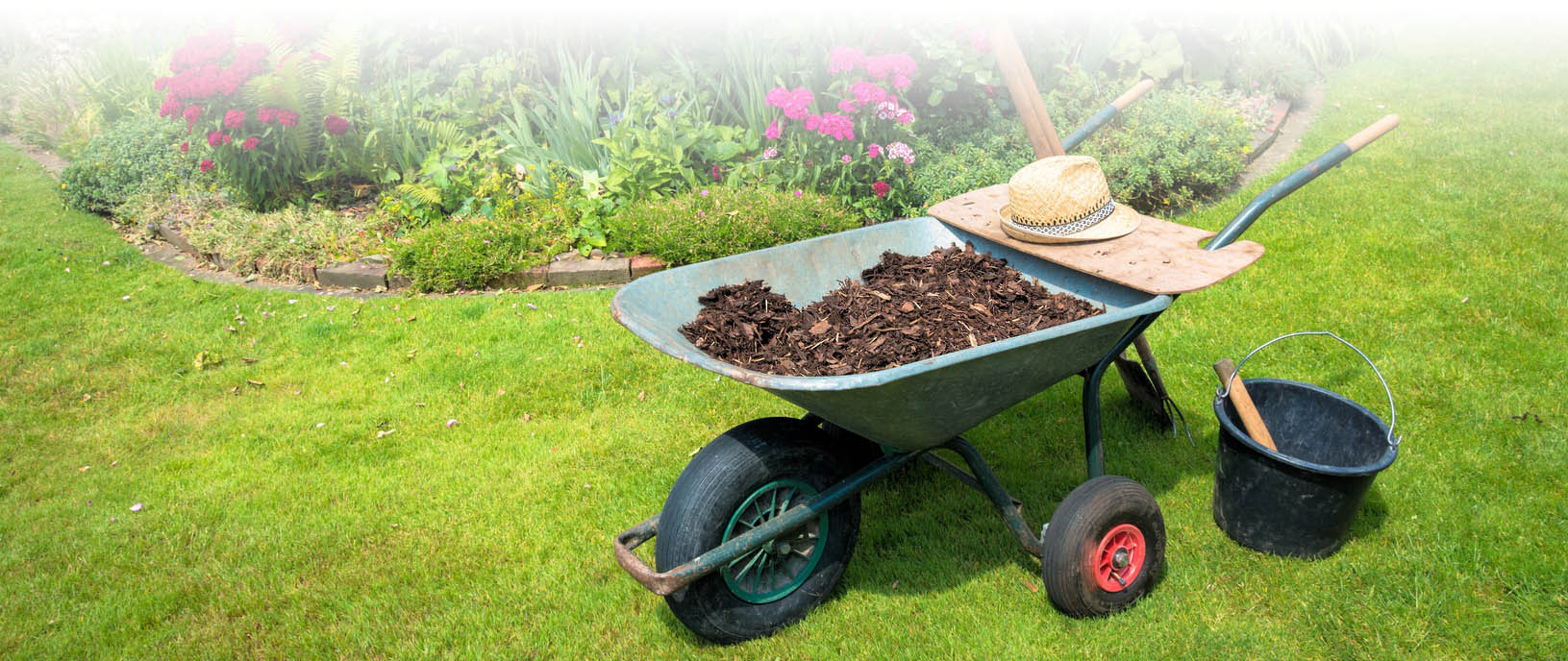 Rabattenpflege, Rasenmahd